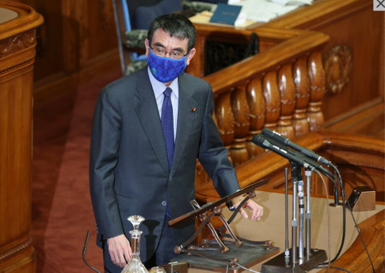 河野太郎在国会回答在野党议员提问(时事通信社)