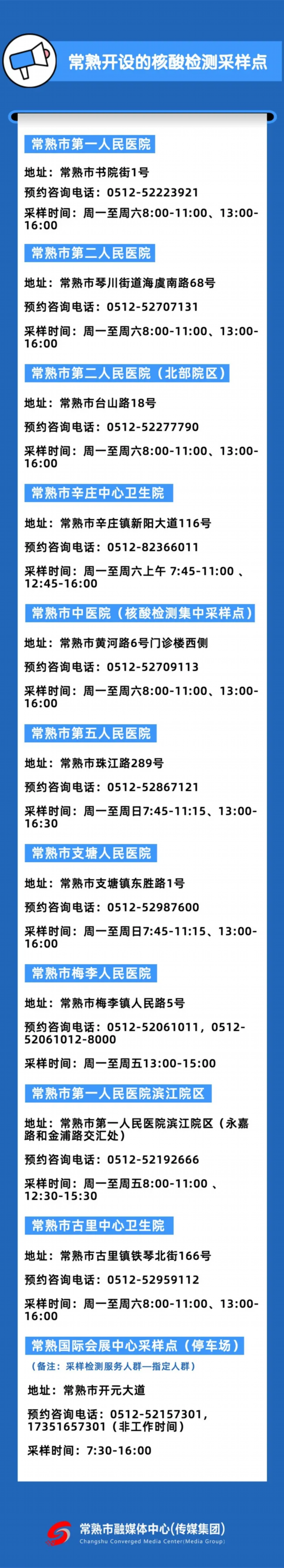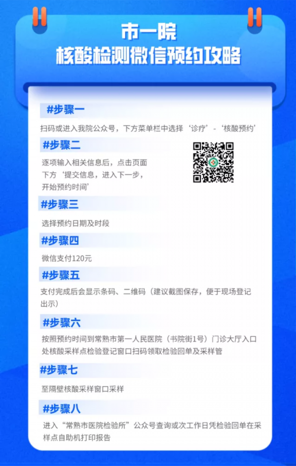 进入“常熟市医学检验所”或“常熟智慧健康”微信公众号查询核酸检测报告