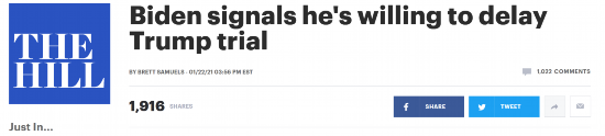 【环球网报道记者 赵建东】据《国会山报》刚刚消息,美国总统拜登22日暗示,愿意等到参议院下个月开始对特朗普弹劾案的审判,理由是这会让新政府有更多时间“启动并运转”。