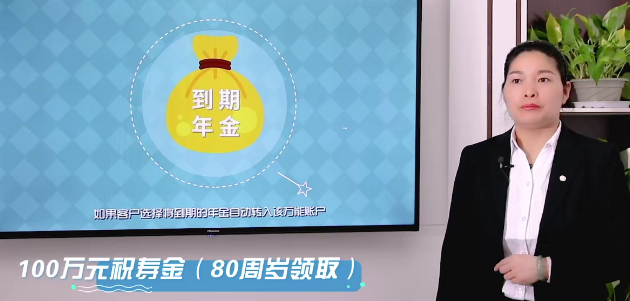 以张先生0岁的男宝举例,投保华夏福临门年金保险10万元10年交,选择80周岁领取祝寿金,并搭配华夏附加金管家终身寿险,自合同第五个保单周年日起,只要被保险人在任一保单周年日零时仍生存,该保单周年就会获得32000元年金,直至终身。如果被保险人80周岁后首个保单年度日零时仍生存,将获得祝寿金100万元,相当于全部已交保费。