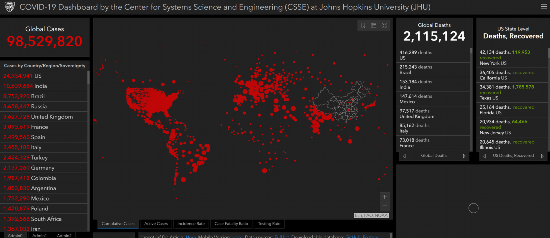 据美国约翰斯·霍普金斯大学截至美东时间23日下午15时21分的数据,美国累计新冠肺炎确诊病例已达到24934941例,逼近2500万例。死亡人数升至416289人。