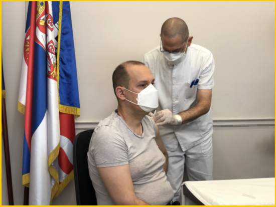 1月19日,塞尔维亚卫生部长隆查尔成为中国疫苗在塞尔维亚的首位接种者
