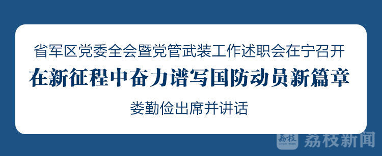 荔枝新闻讯 1月23日至24日,省军区党委十四届六次全体(扩大)会议暨党管武装工作述职会在宁举行。省委书记、省军区党委第一书记娄勤俭出席会议并讲话。