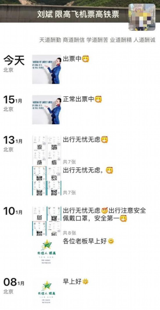 出一张票少则带来小几百元收益,多则上千元,不过,王军山、“滕大叔品牌运营”、“刘斌-限高飞机票高铁票”等人近日也害怕起来。