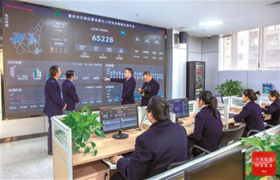 重庆市巴南区纪委监委聚焦群众身边腐败和作风问题,坚决纠治党员干部不作为、慢作为、乱作为等问题。图为近日,该区纪委监委干部通过信息数据分析平台查看政府职能部门及工作人员工作作风、办事效率等情况。摄影/邓箭(巴南区纪委监委干部)