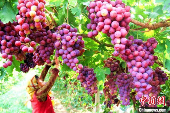 图为敦煌市莫高镇农民采摘葡萄。(资料图) 张晓亮 摄