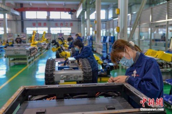 资料图:工人正在组装机器人。中新社记者 田雨昊 摄