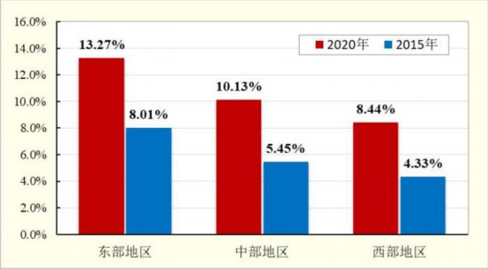 从地区看,中国东部地区公民科学素质水平持续领跑,长三角、珠三角城市群公民科学素质水平处于领先地位。东部、中部和西部地区的公民科学素质水平分别为13.27%、10.13%和8.44%。京津冀、长三角和珠三角三大城市群的公民科学素质水平分别为14.24%、15.54%和15.21%。