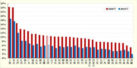 调查结果显示,2020年,中国31个省区市和新疆生产建设兵团的公民科学素质水平全部达到或超过各自“十三五”预期发展目标。其中,上海(24.30%)和北京(24.07%)两地遥遥领先;天津(16.58%)、江苏(13.84%)、浙江(13.53%)、广东(12.79%)、福建(11.51%)、山东(11.47%)、湖北(10.95%)、安徽(10.80%)8省市超过全国总体水平;辽宁(10.41%)、重庆(10.20%)、河南(10.17%)、湖南(10.14%)、陕西(10.13%)、河北(10.05%)6省市均超过10%。