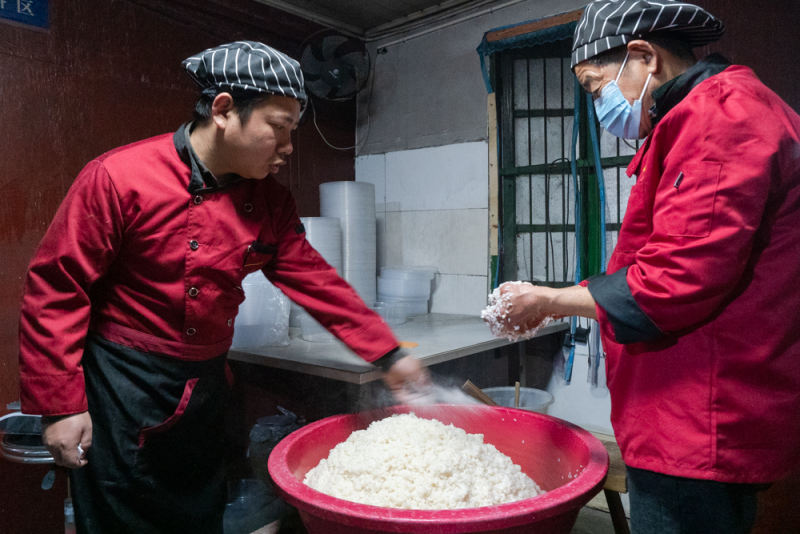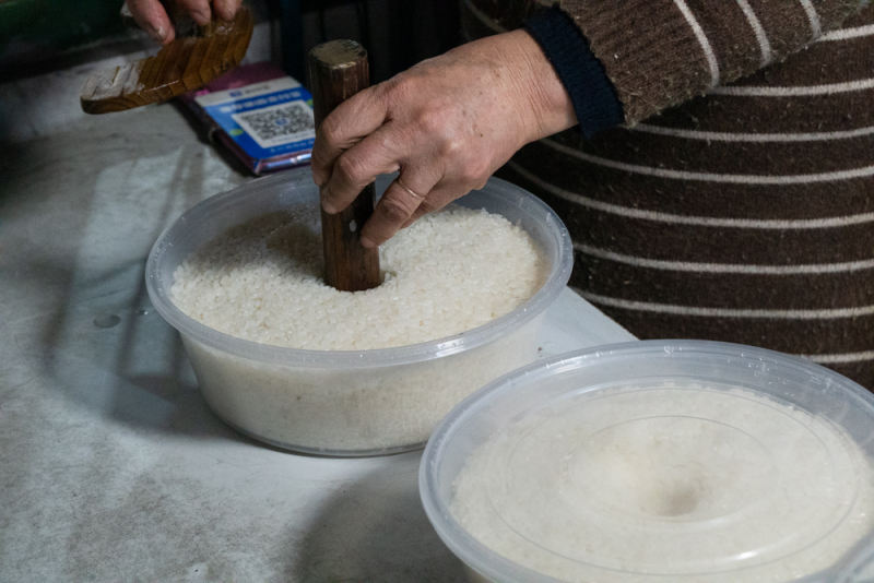 沈英杰告诉记者,这些年通过摸索,他对酒酿的传统制作方法作了改良。最早之前都是下面铺着稻草,然后把拌好酒曲的熟糯米放在大缸里面,然后盖上用稻草编的盖子,让它自然发酵的,而现在他的方法是先分装再发酵,这样不仅能更好地保留醇正的口感,也避免了后分装可能产生的二次污染等隐患问题,而且生产效率更高。