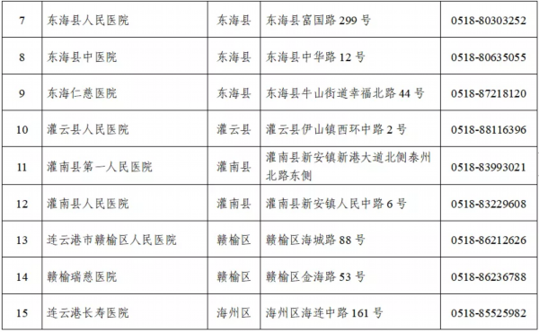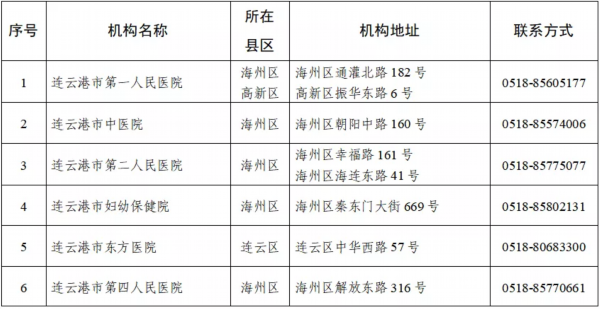连云港市具备核酸检测能力的医疗卫生单位名单