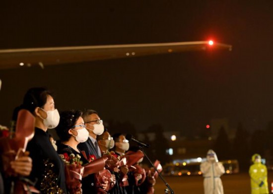 当地时间2020年7月22日,美国务院在一份声明中称,要求中国驻休斯敦总领事馆在2020年7月24日下午4时前关闭。图为2020年8月17日晚,驻休斯敦总领事馆全体馆员乘包机抵达北京,外交部在首都机场举行简短庄重的迎接仪式。