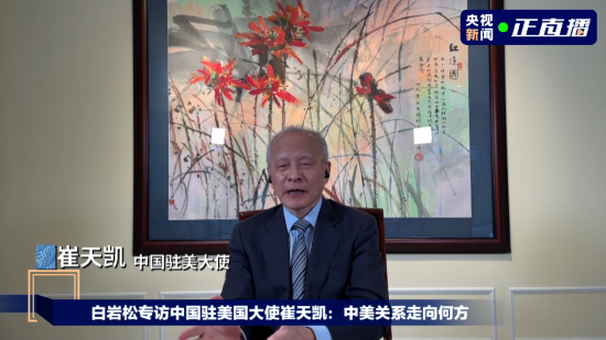 崔天凯表示,从长远的历史角度看,中美之间只有“合作”这个唯一正确的选择,只要双方能够做出这样的选择,坚定不移地克服困难,朝着这个方向努力,中美关系应该能够迎来一个光明的前景。