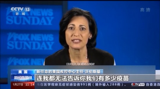 新任命的美国疾控中心主任 沃伦斯基:现在最大的问题之一就是,连我都无法告诉你我们有多少疫苗。我没法告诉你,我没法告诉各州州长,我也没法告诉州卫生官员。