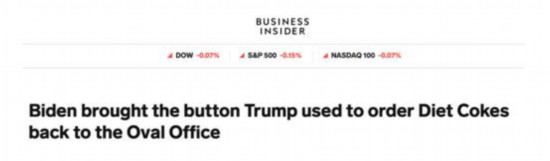 “呼唤按钮”可以用来呼叫白宫工作人员、特勤局特工和其他官员。报道称,但特朗普似乎已经告诉他的工作人员,如果他按下按钮,这表示他想要一杯健怡可乐。