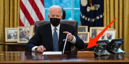 报道称,25日发布的一张照片中可以看到,这个按钮又被拿了回来,就放在拜登的手边。和之前特朗普放在办公桌上的位置一样。