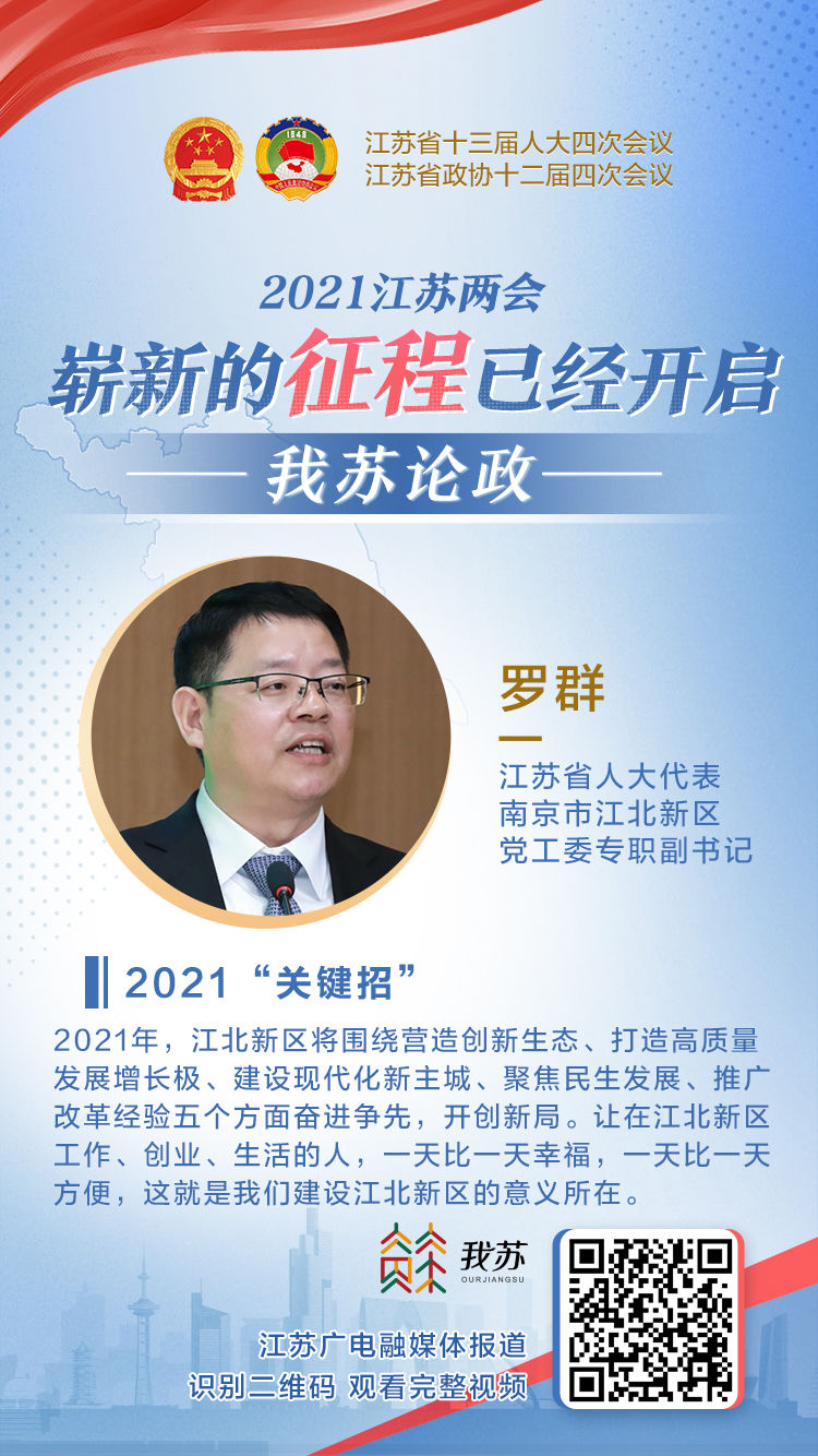 【编者按】崭新的征程已经开启,更大的胜利还在前方。2021江苏省两会上,省委书记娄勤俭发出“时间不等人!机遇不等人!发展不等人!”的动员令,鼓舞全省上下风雨无阻向前进。站在“十四五”开局之年的新起点,“我苏”客户端推出《我苏论政·崭新的征程已经开启》时政品牌栏目,聆听一线代表委员新一年的愿景期许与奋斗目标,展现他们的履职风采和江苏发展的蓬勃面貌。