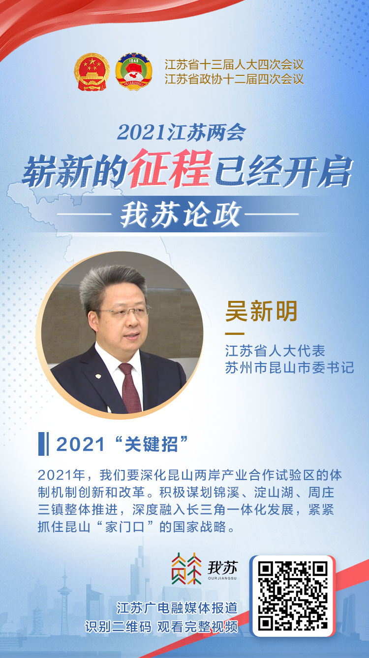 新的历史阶段,要贯彻新的发展理念,还要构建新发展格局,“新”是2021年昆山发展的关键词。新征程中我们要承担新使命,回去之后我们会认真落实省两会的精神,加大力度,加快步伐,扛起“两争一前列”的担当。