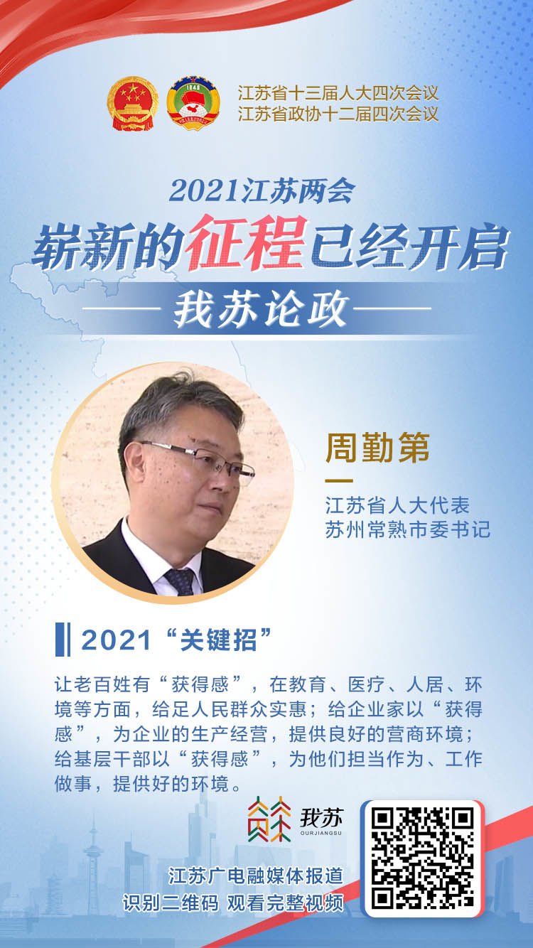 【编者按】崭新的征程已经开启,更大的胜利还在前方。2021江苏省两会上,省委书记娄勤俭发出“时间不等人!机遇不等人!发展不等人!”的动员令,鼓舞全省上下风雨无阻向前进。站在“十四五”开局之年的新起点,“我苏”客户端推出《我苏论政·崭新的征程已经开启》时政品牌栏目,聆听一线代表委员新一年的愿景期许与奋斗目标,展现他们的履职风采和江苏发展的蓬勃面貌。