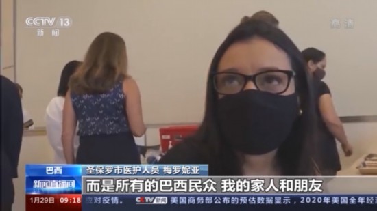 圣保罗市医护人员 梅罗妮亚:我希望现在全部的巴西民众,都能够接种上新冠疫苗,这是我的愿望。不仅仅是医护工作者,而是所有的巴西民众,我的家人和朋友都能接种,这样才能回归正常的生活。
