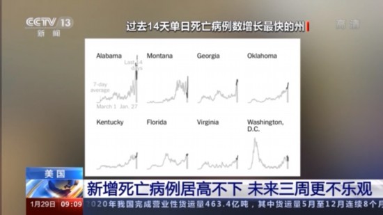随着美国新冠肺炎死亡病例不断激增,今年1月已成为美国疫情暴发以来最致命的月份,截至目前,本月累计死亡病例数已突破8万例。据美国媒体今日美国28日报道,目前美国的日增死亡病例数仍然维持高位,相关模型更是预测,未来三周情况更加不容乐观。