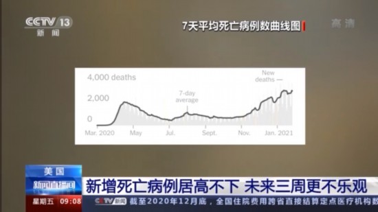 今日美国报道称,美国最近的单日死亡病例数仍然接近本月早些时候创纪录的数字。据统计,美国目前平均每周累计死亡病例数已维持在23000例的水平。