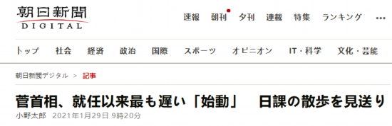 不知是否因为熬夜经过一天还没缓过来,菅义伟29日创下到达首相官邸的最晚记录。《朝日新闻》称,菅义伟当地时间早上8时24分进入官邸,是其自去年9月就任以来的最晚“到岗”记录。而且,菅义伟当日还取消了每天必做的散步活动。据其周围人士称,菅义伟有感冒迹象,吸进早上的冷空气对喉咙不好。