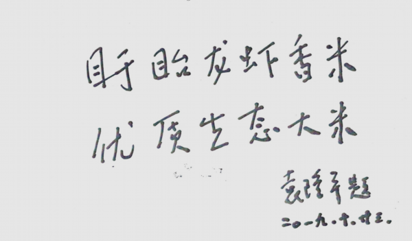 马坝镇高桥街南社区与盱眙龙虾产业集团企村联建,把“虾稻共生”产业园打造成集团核心基地,龙虾香米得到了袁隆平院士亲笔题词“盱眙龙虾香米、优质生态大米”。