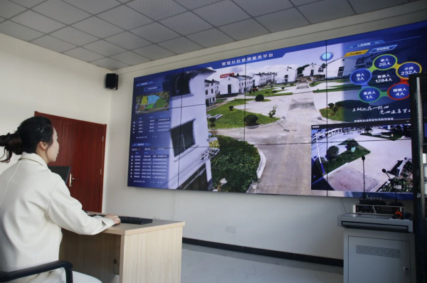 黄花塘镇桃源小镇搭建社区智慧平台,通过视频监控全覆盖,将小区实时状况搬到屏幕上,“人房一体”实现了“网格到户”的精细化管理。