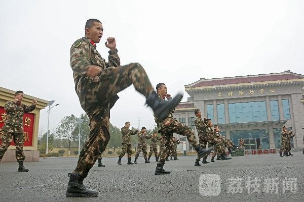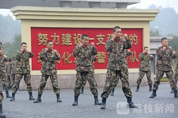 训练场上,呼声嘹亮、士气高昂,一招一式、铿锵有力,在成百上千次的训练中,一个个出拳有力、踢腿如风,展现出新同志“初生牛犊”般的热血新风。