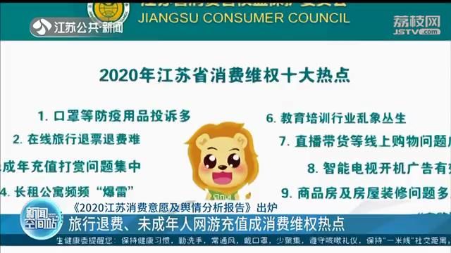 2020年,江苏居民的消费维权主要集中在在线旅行退票退费难;未成年网游充值问题凸显;长租公寓“爆雷”引关注;直播带货频频“翻车”等等。疫情期间,由于出行计划受阻, 旅行退票退费问题成为旅客最关心的问题。