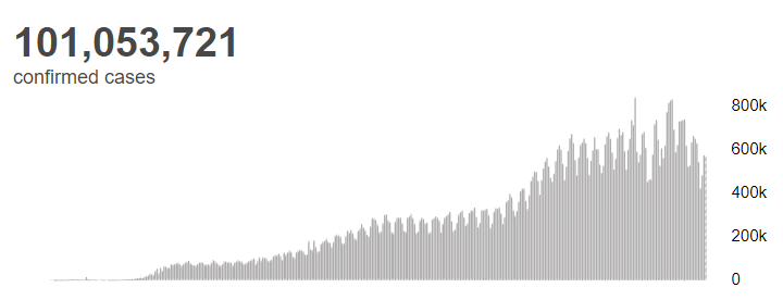 世卫组织:全球新冠肺炎确诊病例超1亿零105万例
