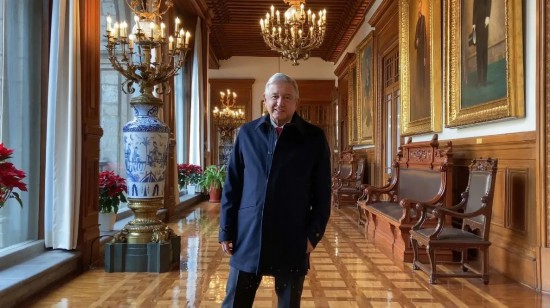 当地时间1月29日,墨西哥总统洛佩斯在宣布确诊新冠肺炎5天后首次露面。他在墨西哥国家宫通过视频连线重新出现在大众面前。
