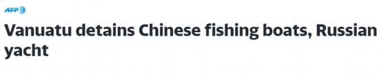 【环球网报道 记者 侯佳欣】据法新社30日最新消息,太平洋岛国瓦努阿图警方称,该国扣留了一艘俄罗斯游艇和两艘中国渔船,原因是担心这些船只在瓦努阿图水域“非法作业”。报道称,这是瓦努阿图首次扣留中国渔船。