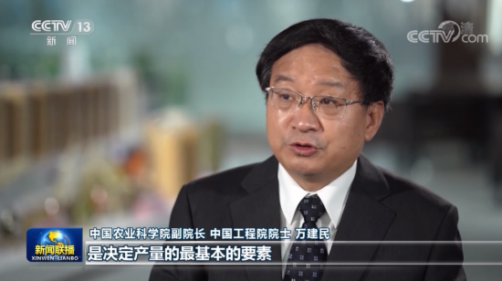 中国农业科学院副院长 中国工程院院士 万建民:解决粮食安全问题,我们必须要提高单位面积的生产能力。种子,就是品种,是决定产量的最基本的要素。