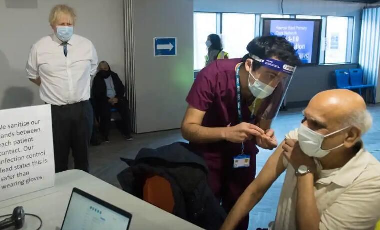 英国首相约翰逊在伦敦观察疫苗接种(图源:外媒)