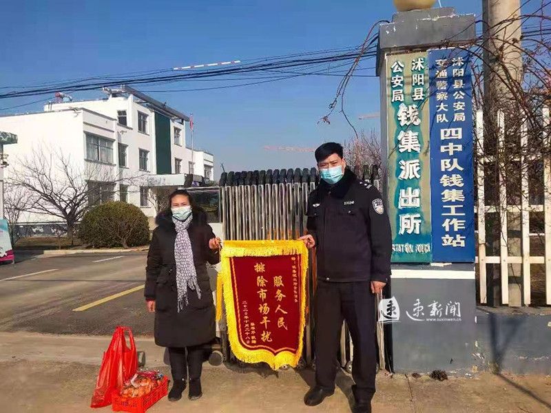 1月30日下午2时许,沭阳县公安局钱集派出所门前,来了一位操着外地口音的中年妇女,只见她手捧一面精致的锦旗说:“我是专门来感谢派出所民警的,感谢你们为我公正处理纠纷。”