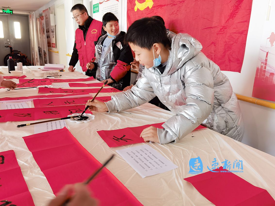 活动现场,书法爱好者为孩子们介绍春联的意义:“春联以对仗工整、简洁精巧的文字,表达着人们对来年的美好渴望,这是我们特有的文学形式,更增添了喜庆气氛……”孩子们在志愿者手把手的指导下开始有模有样地临摹着。“人无信不立 天有日方明”“莺歌颂小康 燕舞迎新岁”……一副副散发着墨香的春联和阵阵欢笑声,让活动现场洋溢着一片迎春的喜气。“这是我写的第一副春联,我要带回去给我妈妈看。”四年级学生沈禹豪说。