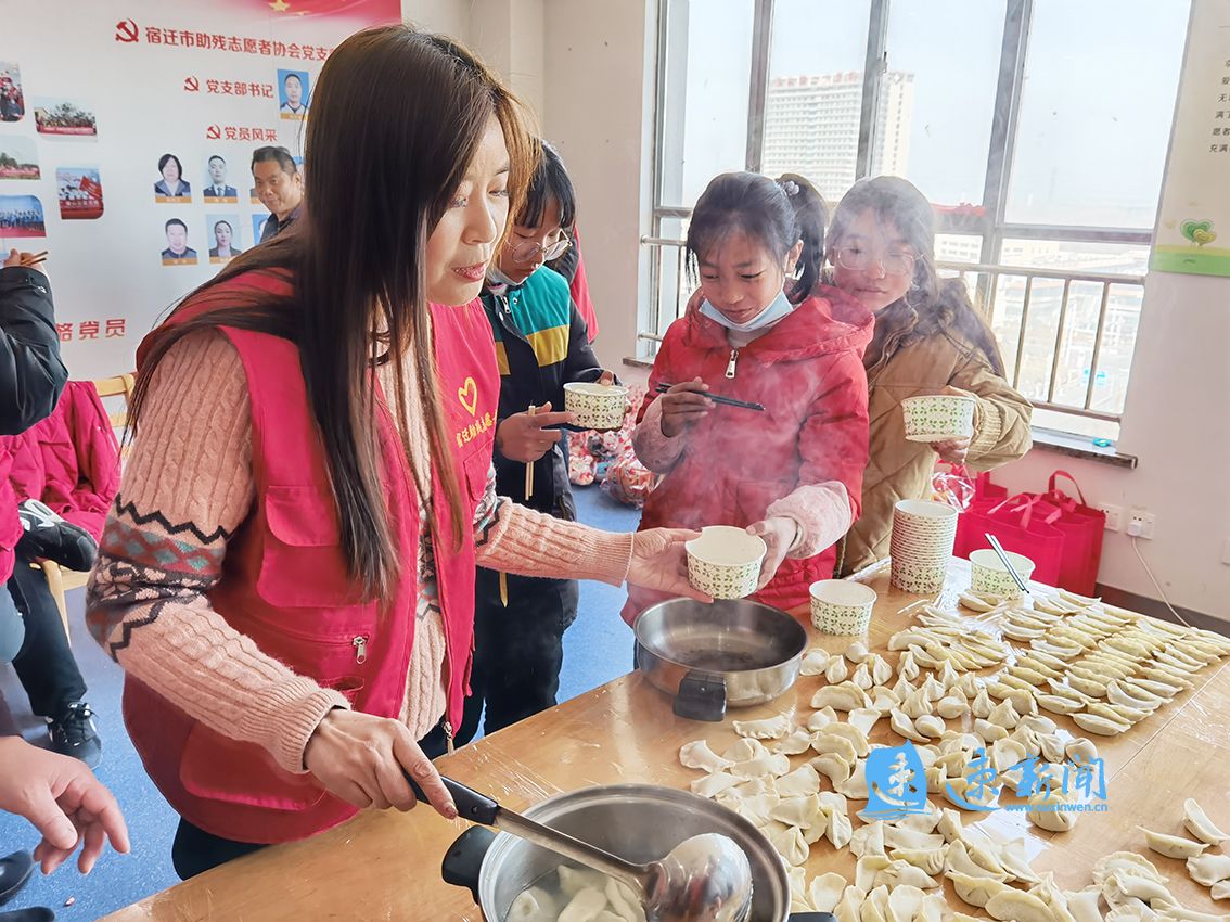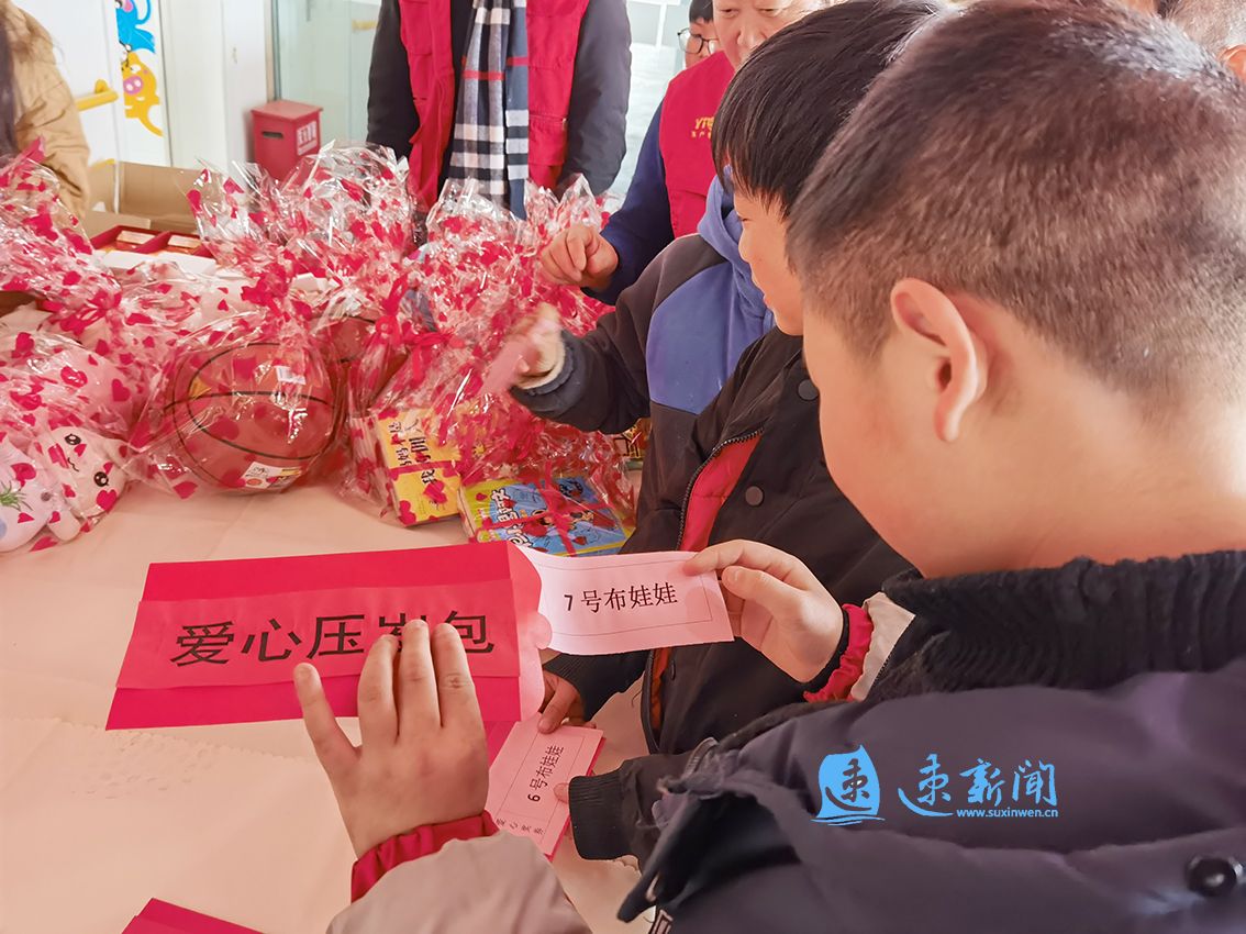 活动现场还设置了多个主题活动,包括包饺子、做汤圆、领压岁包等。桌子上的“爱心压岁包”由孩子们自行抽取,并对“压岁包”里的奖券进行现场兑换奖品。活动结束后,助残志愿者还给孩子们准备了新年礼物。宿迁市助残志愿者协会会长王慧介绍,本次活动以关爱贫困留守儿童为重点,不仅仅是给孩子们送去新年物品,更重要的是呼吁社会更多的去关注贫困留守儿童的生活,给予他们更多的关怀和温暖。