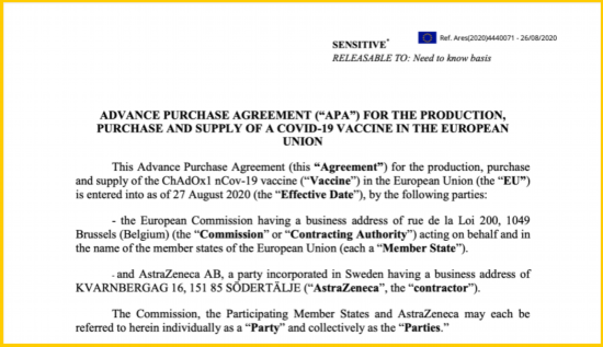 1月29日,欧盟公布了从2020年8月27日开始生效的预先采购协议文本。尽管协议中部分保密信息被隐去,但协议本身仍能够解答外界的不少疑问。