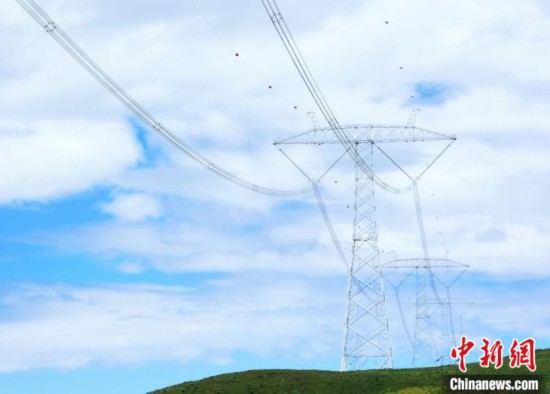 图为±800千伏青海-河南特高压直流输电线路跨越山川草原将清洁电能输送至中原地区。 张江南 摄