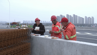 工人王金明:“最近都是从早上六点干到晚上六点,为了抢工期嘛,吃饭就都在工地上吃了。”