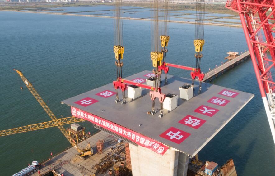 大桥于2018年4月开工,自入场施工以来,面对超强台风“山竹”和高温暴雨等不利条件,以及疫情带来的诸多困难,项目建设团队充分发挥出特别能吃苦、特别能战斗、特别能奉献、特别能创新的“四特精神”,攻坚克难,较好实现了项目建设任务目标。目前,大桥钢箱梁、钢塔架设、连续钢构施工均已全面展开,将于春节期间进行全桥最重钢梁架设及难度最大的钢主塔吊装工作,预计2023年正式建成通车,届时,从金湾到横琴仅需10-15分钟,从珠海机场到拱北仅需25分钟,将大大缩短主城区和西部城区的交通时间。