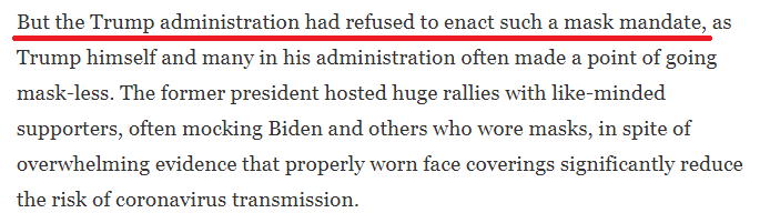 这被认为是拜登政府“百日新政”的内容之一。去年美国暴发新冠肺炎疫情后,卫生专家曾屡屡呼吁在公共场所佩戴口罩,但在特朗普政府的抗疫政策下,戴不戴口罩甚至成了一种划分政治立场的标志。拜登就职后签署多项行政令,其中以“百日口罩令”最为引人注目。