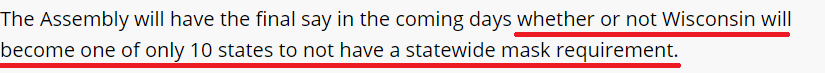 虽然看在钱的份上暂时没有表决,但事情还没完。据悉,该州议会最快于本周仍会投票决定是否终止口罩令。而如果最终取消了口罩令,威斯康星州将成为美国仅剩的10个没有实行全州口罩令的州之一。