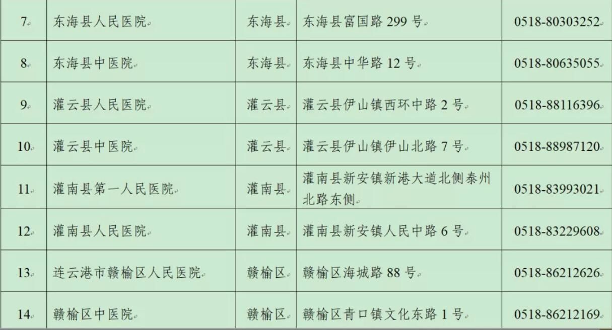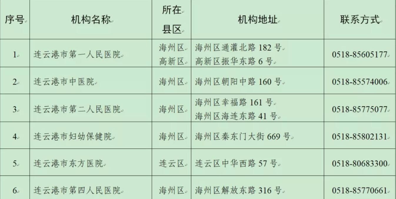 连云港市具备核酸检测能力的医疗卫生单位名单