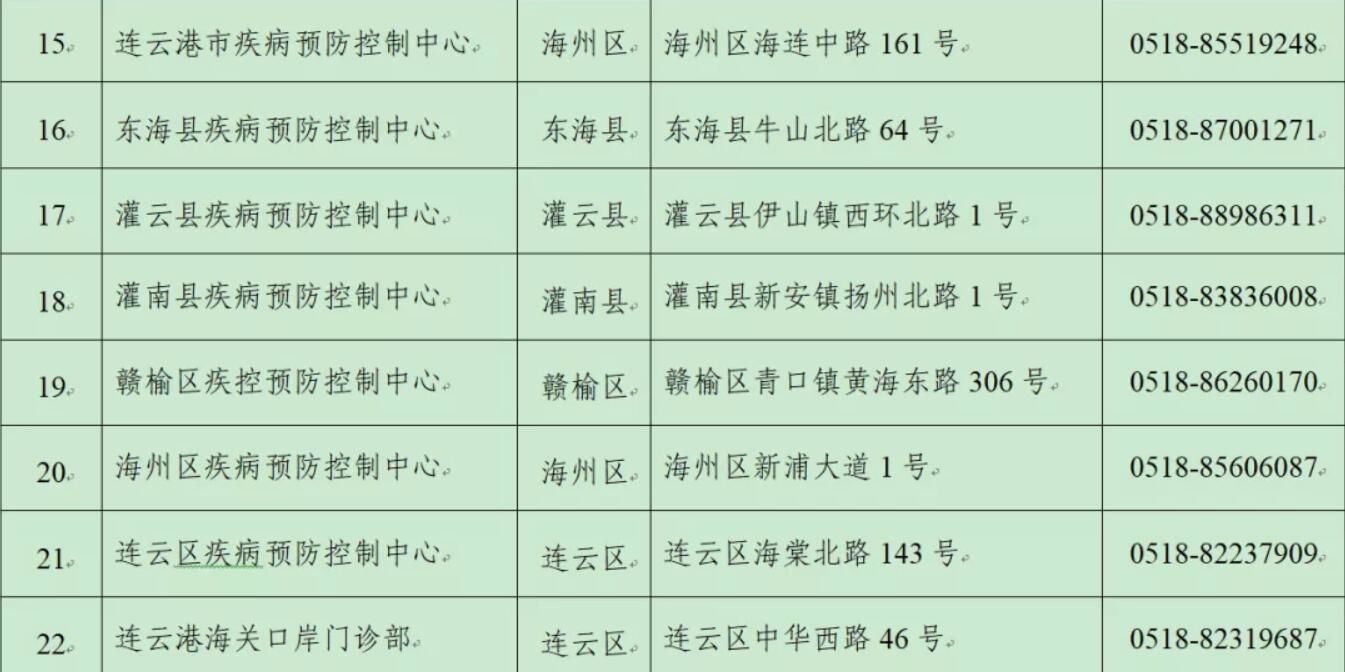 目前,在连云港地区具备核酸检测能力的医疗卫生单位名单、地址、联系方式,详细如下。