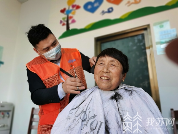 上午9时许,宿迁一家美发染连锁店负责人解凯,赶到振友社区残疾人之家便忙开了。至当日下午1时许,解凯和他的员工,为40多名当地村民免费理发。