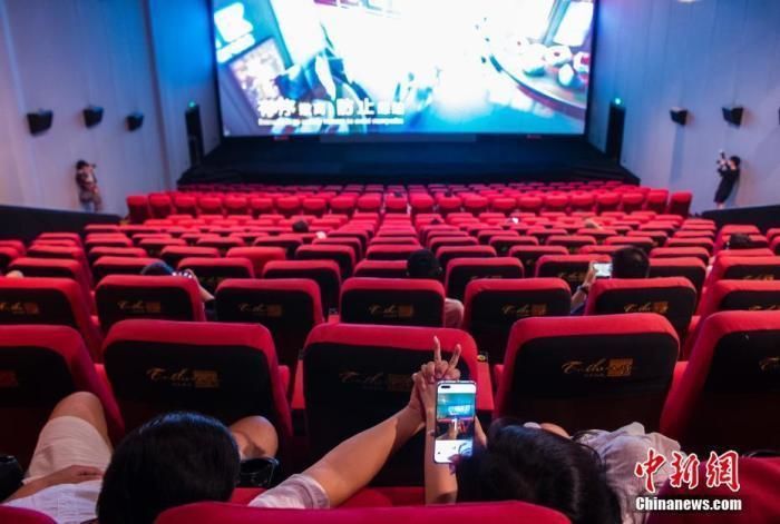 资料图:2020年7月,位于北京市朝阳区的一家电影院内,观众间隔入座、佩戴口罩观看影片。中新社记者 侯宇 摄