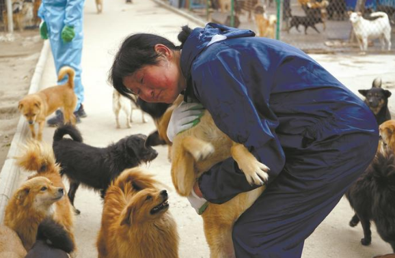 一进入“汪汪乐园”,协会会长朱姐就抱起了一只狗狗,“平常很少有时间来照顾它们,今天一定要让它们饱餐一顿。”朱姐瞬间热泪盈眶。